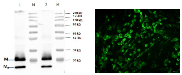 I risultati del WB hanno mostrato che questo anticorpo può riconoscere efficacemente la proteina CCOV M. I risultati IFA hanno indicato che questo anticorpo può riconoscere efficacemente le cellule CCOV - infette.